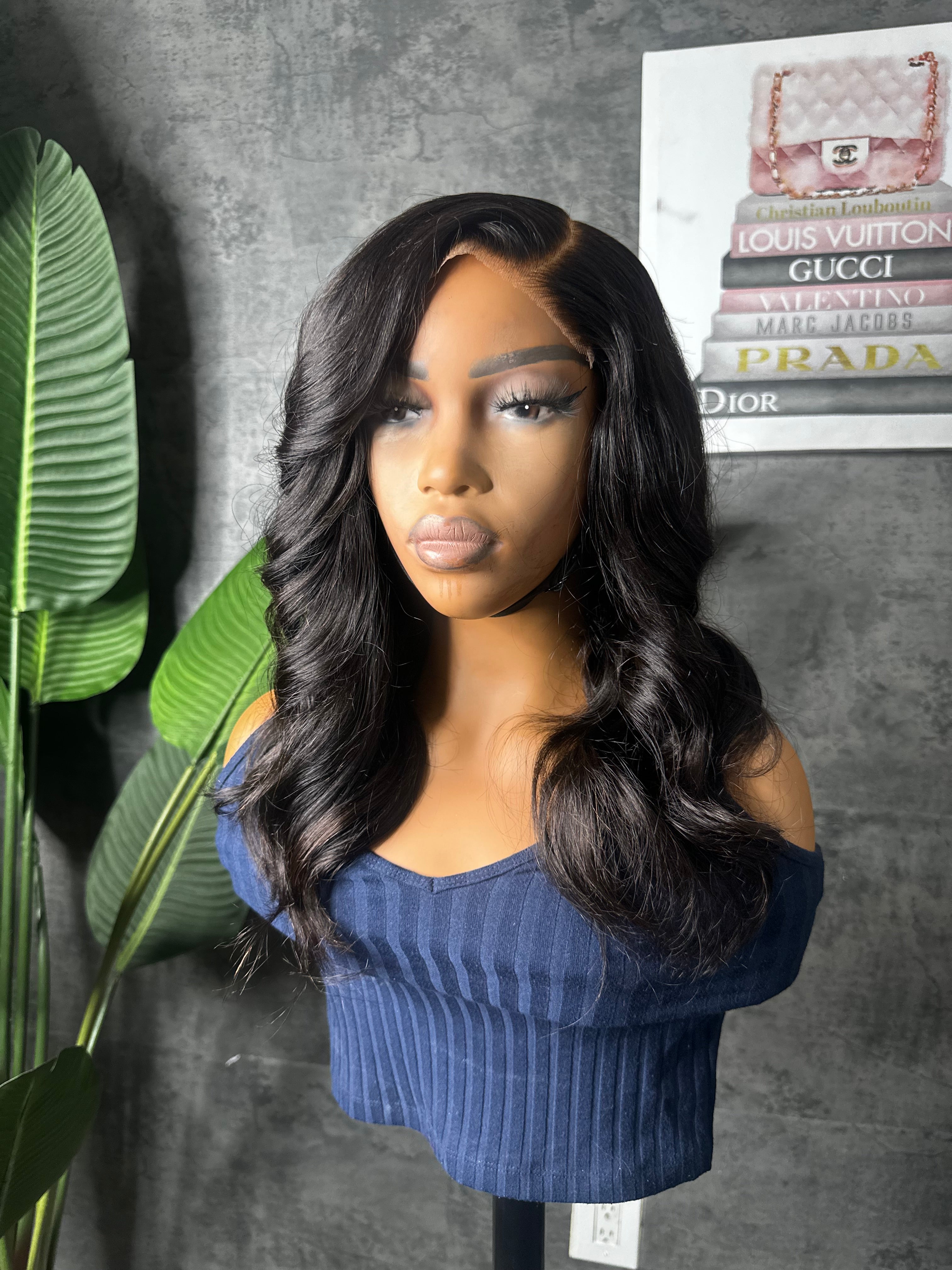 Effortless beauty meets convenience with this glueless 14’ closure wig, designed for a flawless, natural look. Featuring a pre-cut lace with a customized hairline and bleached knots, this unit delivers a seamless melt straight out of the box—no glue or extra work required.